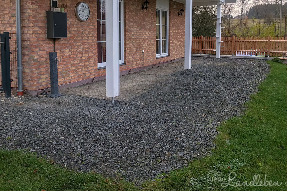 Das vorerst letzte Kapitel von unserem Projekt Hausbau hat begonnen: endlich, endlich wird rund ums Haus gepflastert! 🙂