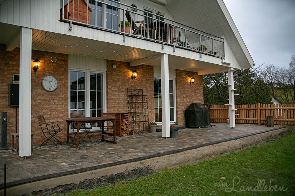 Auf jeden Fall konnten wir die Gartenmöbel schon wieder hinräumen und freuen uns jedesmal beim Blick aus dem Fenster über die wunderschöne Terrasse. 🙂