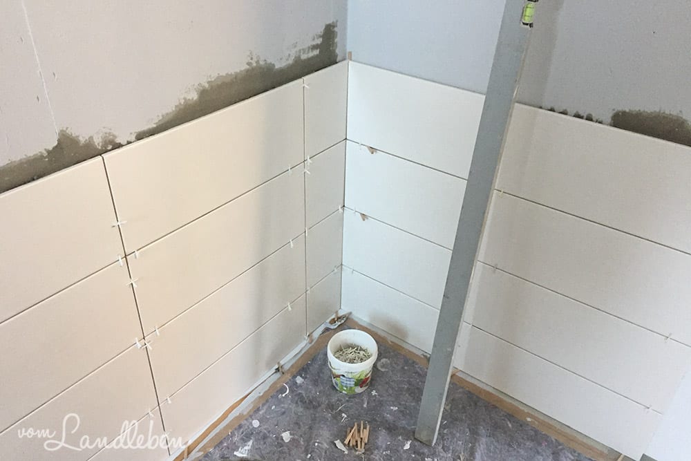 Auf deine Dusche wäre meine Mama und meine Schwester ja neidisch – weil du Wände hast. Die beiden duschen mit Vorhang, weil unsere Dusche irgendwie drei offene Seiten hat…