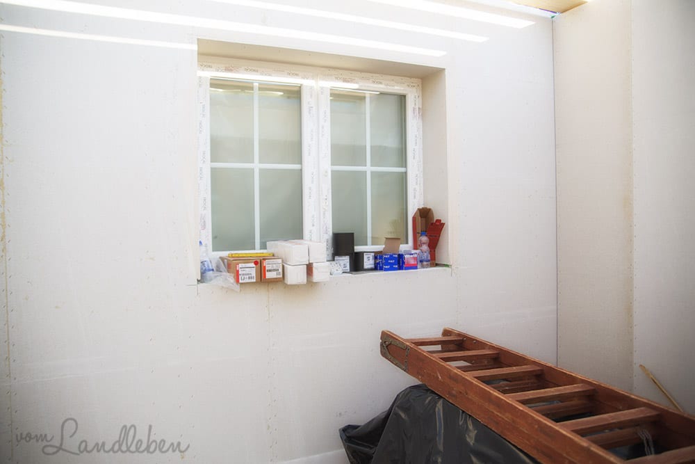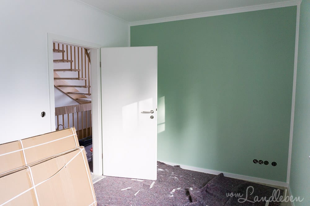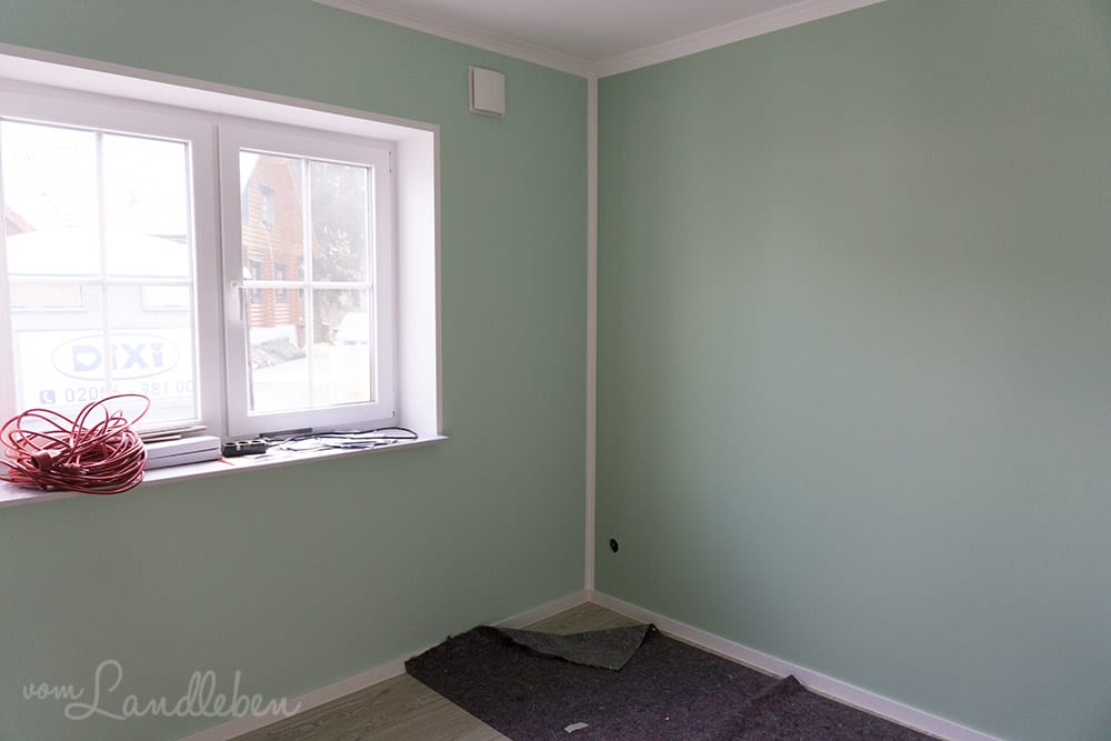 Wir haben auf jeden Fall zwei verschiedene Grüntöne verstrichen, der an der Wand mit dem Fenster ist minimal heller.