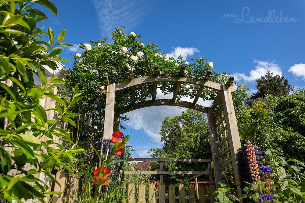 Wildromantisch ist unser Garten, und naturnah. Ich verzichte auf künstliche Düngung und chemische Keulen und setze stattdessen auf Mischkultur, unseren eigenen Kompost, biologische Hausmittelchen und Elemente aus der Permakultur.