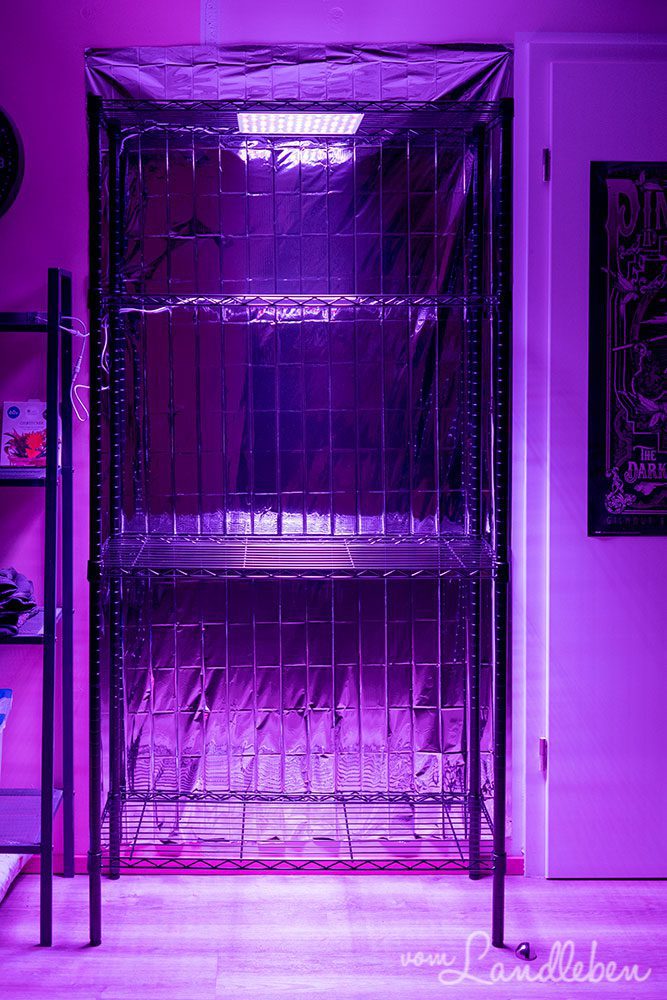 Wenn du so wie wir keinen Wintergarten oder einen ähnlich geeigneten Raum zum Vorziehen hast, schafft künstliche Beleuchtung Abhilfe.