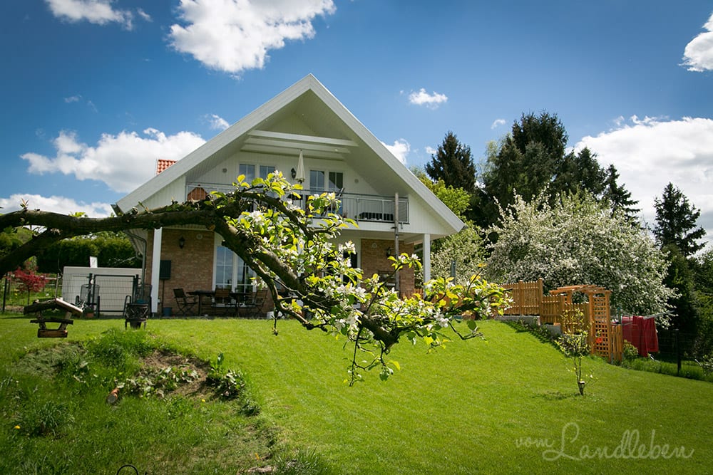 Im Jahr zuvor pflanzten wir die Magnolie und die Apfelbaum, der Rasen wurde eingesät und es war alles in allem noch ganz schön kahl: