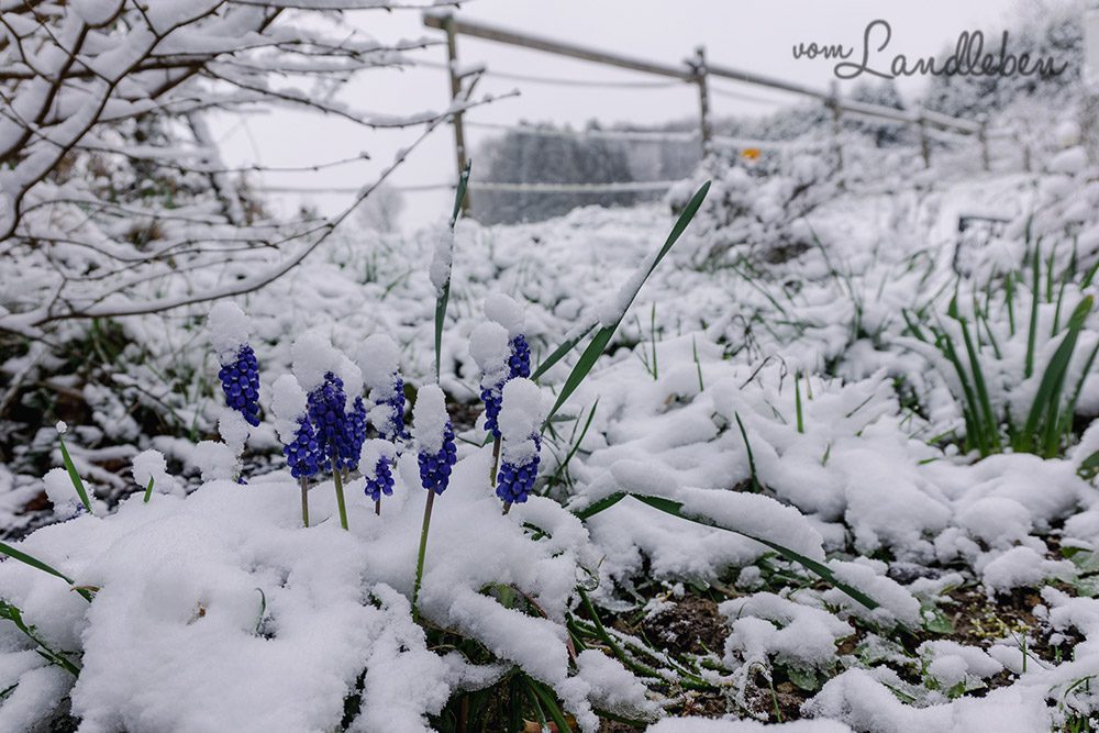 Verwöhnte uns der März noch mit Frühlingswetter wie aus dem Bilderbuch, so startete der April richtig fies mit Schnee und Minusgraden. Zum Glück wurde es aber nicht so eisig, als dass die Blüten an den Bäumen, Sträuchern oder Stauden erfroren wären. Puh!