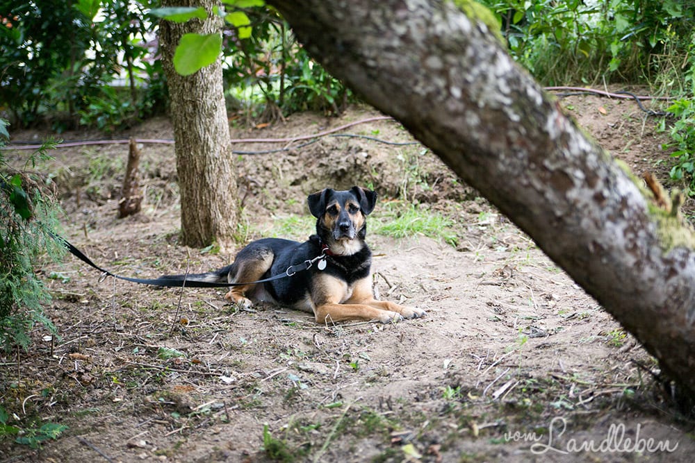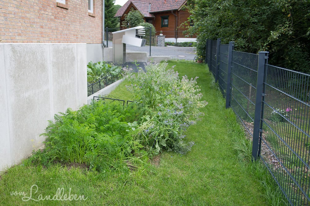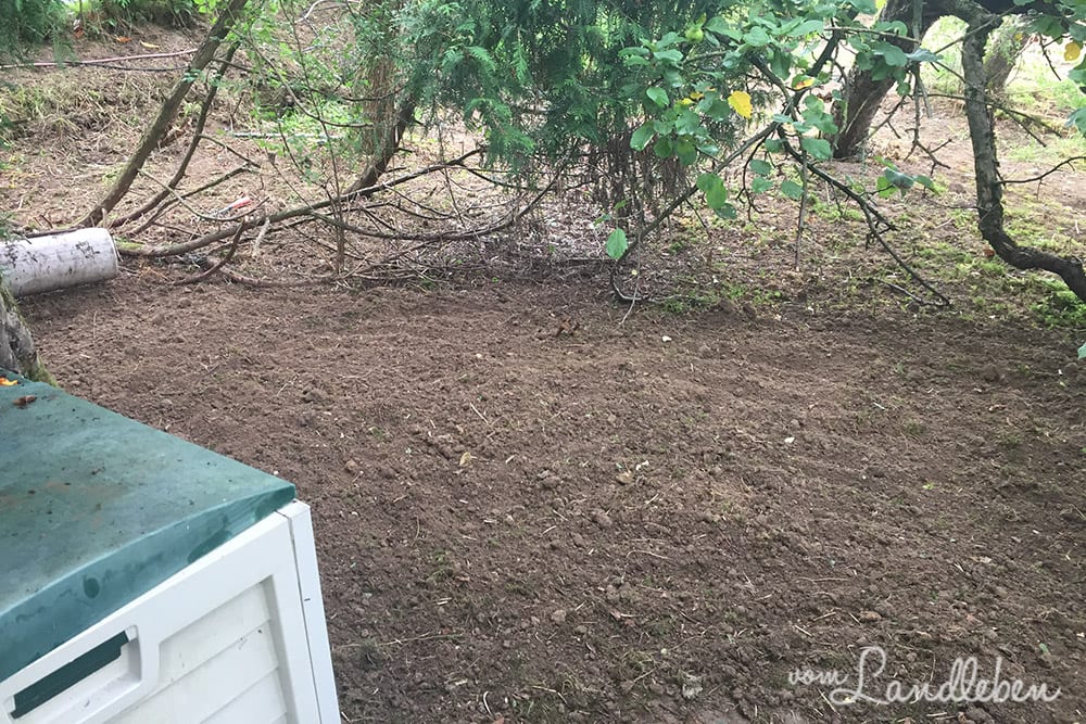 Im Juli 2017 legte ich – mit Nalas Hilfe – ein neues Beet an und verwandelte die Wilde Ecke damit in die Bunte Ecke. Mittlerweile steht dort das Gewächshaus.