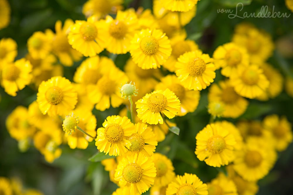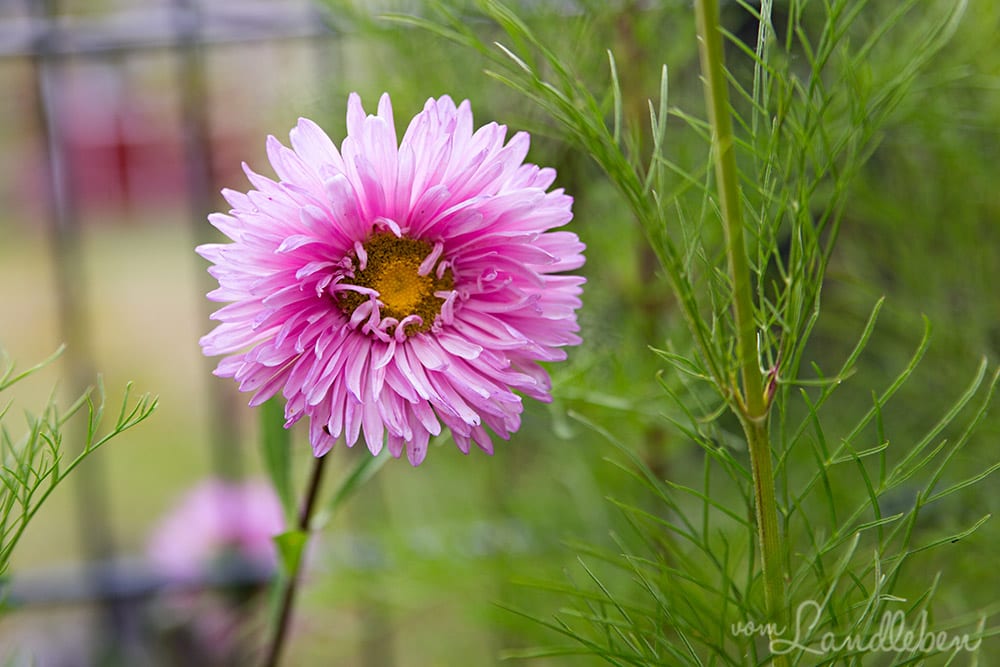 Spannender als das Einsetzen gekaufter Pflanzen finde ich es ja, Samen oder Zwiebeln zu vergraben und zu hoffen, dass etwas daraus wächst. Bei den weißen Gladiolen und gelben Dahlien klappt das gerade wunderbar, die blühen mit den selbst gezogenen pinkfarbenen Sommer-Astern um die Wette. Die älteren lilafarbenen Astern werden erst im Herbst blühen.