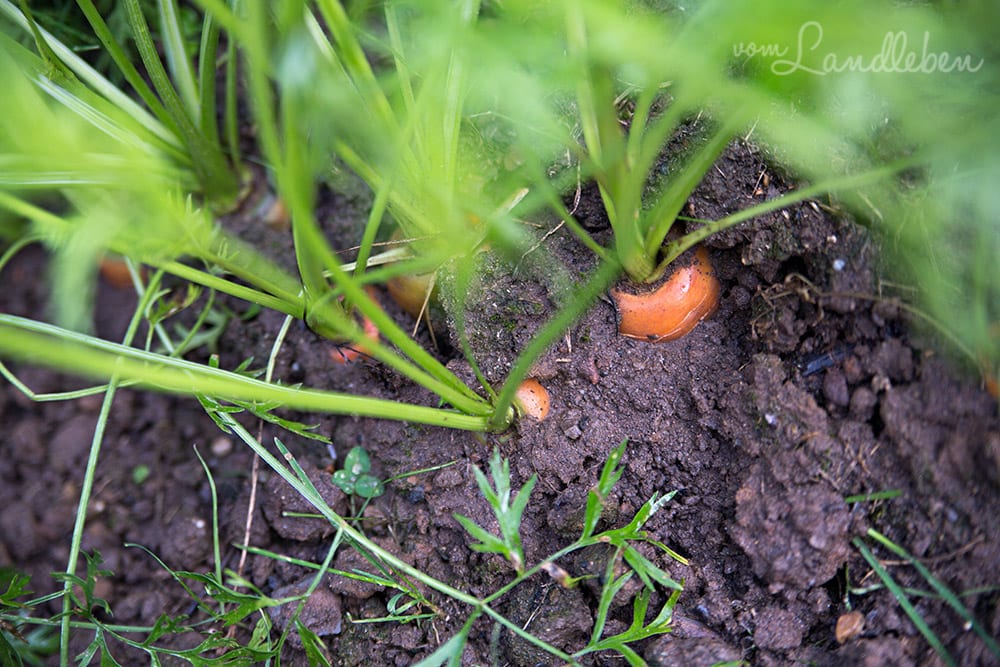 Die Gurke und die Frühlingszwiebeln bereichern gemeinsam mit den Radieschen unseren Salat, und die Möhren sind mittlerweile auch reif.