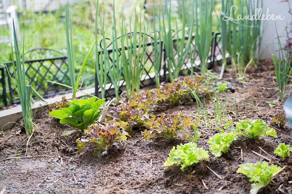 Als Fail hat sich der Wirsing herausgestellt – der wurde ratzekahl abgefressen. Ob das mit dem Rotkohl klappt, weiß ich auch noch nicht… allmählich bildet er eine Kugel in der Mitte, aber die Blätter sind auch schon arg zerlöchert. Der neu gepflanzte Weißkohl und Kohlrabi wurde ebenfalls abgefressen… nächstes Jahr werde ich dann wohl mal den Anbau unter Schutznetzen ausprobieren.