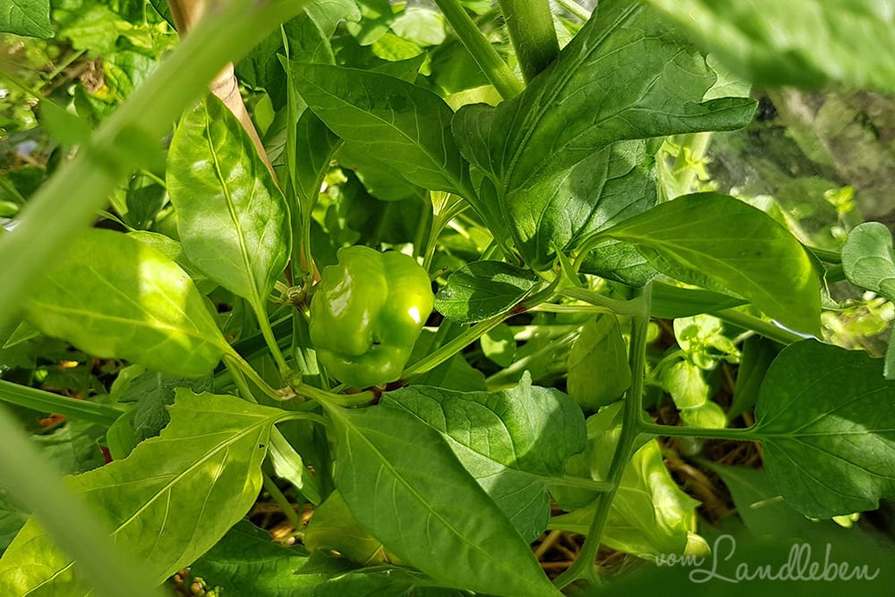 Überhaupt wächst im Gewächshaus alles besser als meine selber vorgezogenen Paprika und Tomaten. Ich vermute, dass es ihnen im Haus einfach zu dunkel war (auch wenn sie direkt unter einem Dachfenster standen)… nächstes Jahr belagere ich damit lieber den Wintergarten meiner Mom.