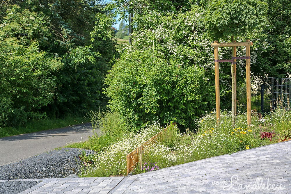 In der Mulde blühen derweil blaue Kornblumen, weiße Schafgarbe, Kamille & Co. um die Wette.