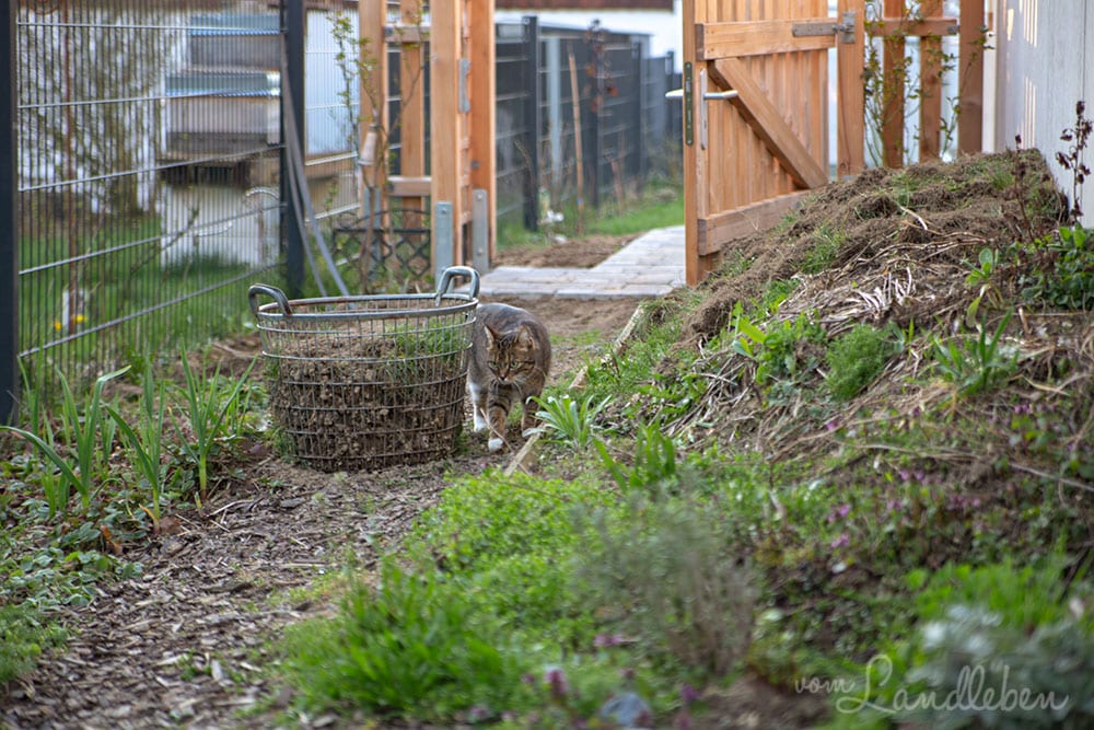 In den Beeten hilft anscheinend nur, sie zu bepflanzen und zu mulchen. Aber gerade jetzt, wo die Gemüsebeete aussaatbedingt quasi kahl sind, kann ich da auch wieder Haufen entfernen. Gnaaaah. In den Gemüsegarten und den Bauerngarten hat der Hund dank Zaun ja keinen Zutritt, ansonsten frisst Nala die Katzenkacke auch noch. Bäh. 😀