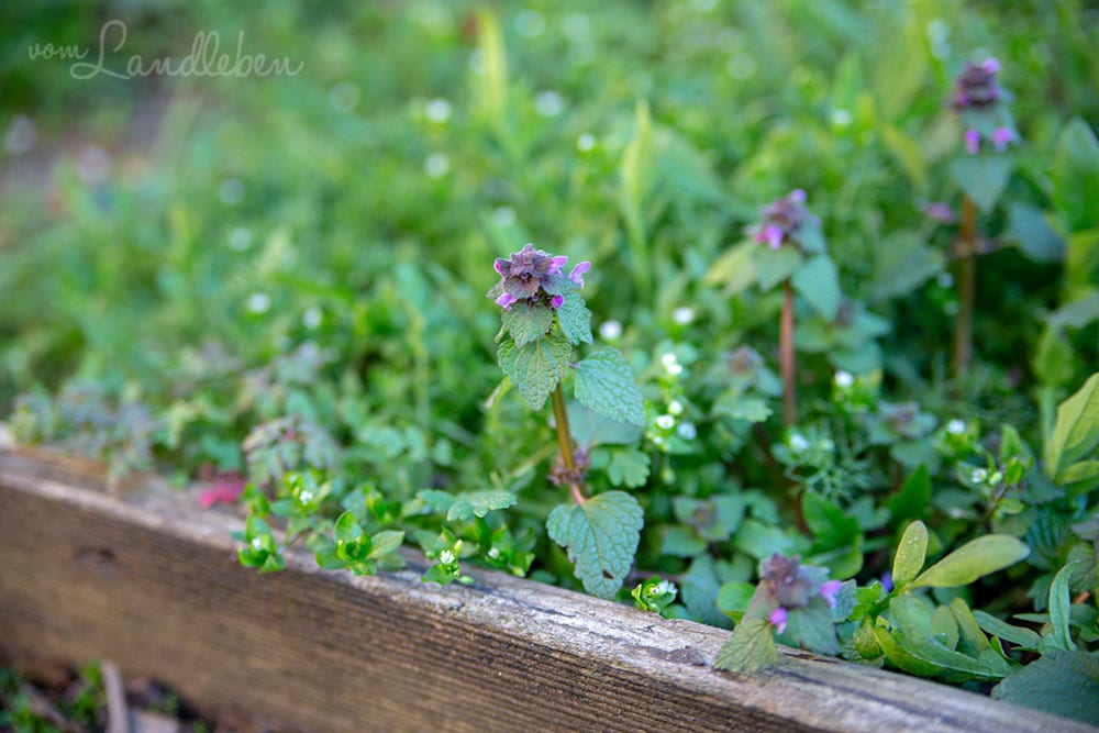 Hinten am Zaun sprießen Bärlauch und Minze um die Wette – letztere muss ich ein bisschen in ihre Schranken verweisen: