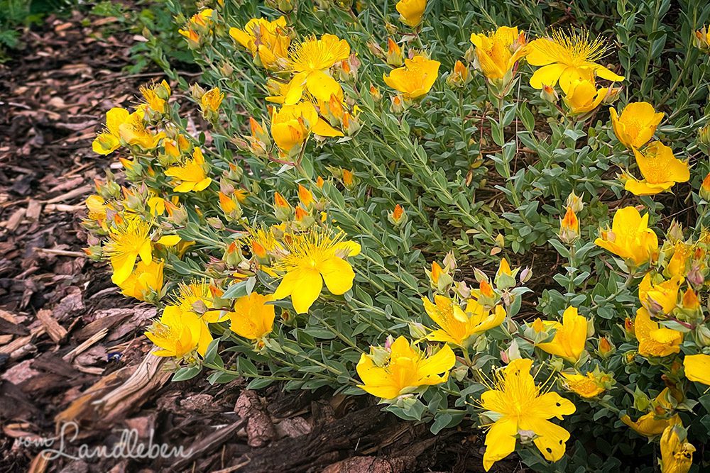 Lupinen, Akelei, Ziersalbei und Johanniskraut blühen um die Wette:
