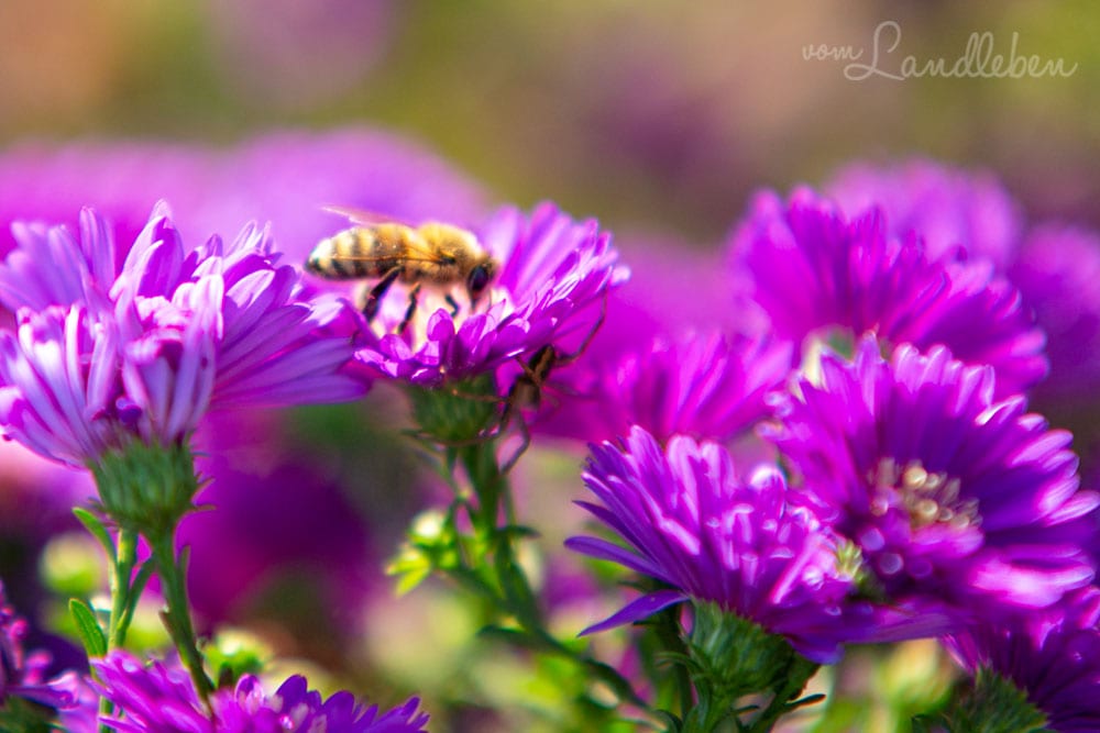 Die Astern blühen weiterhin und locken jede Menge Bienen und Hummeln an: